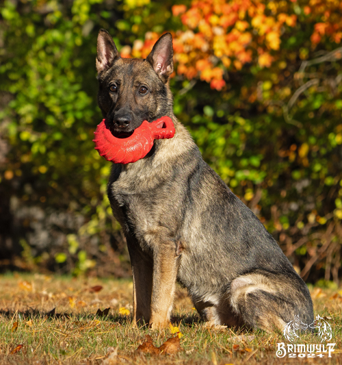 Recreational toys for Shepherds and other large destructive breeds can be useful for keeping them occupied during the working day. Black Kongs are tough and usually well-enjoyed and can be stuffed with goodies and frozen to provide longer-lasting entertainment, alternatively a raw marrow bone can provide several hours of gnawing and nutritional marrow. There are also specific treat-dispensing toys available but make sure that whatever you choose, you make sure to supervize the first time you try it out to ensure that the toy / bone will stand up to the chewing and that the dog doesn't destroy it and swallow the pieces.